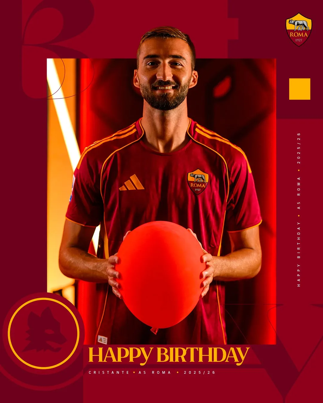 官方赛程-克里斯坦特迎31岁生日,罗马官方社媒为其庆生